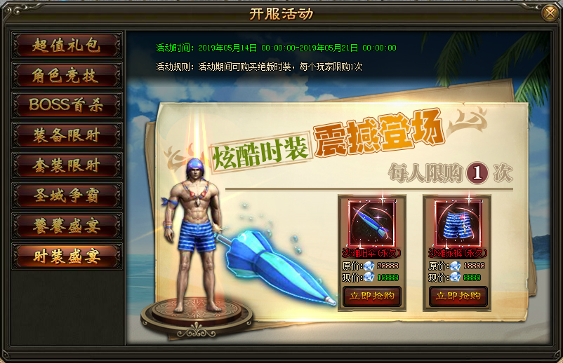 开服前七天可购买炫酷绝版时装,每个玩家限购一次