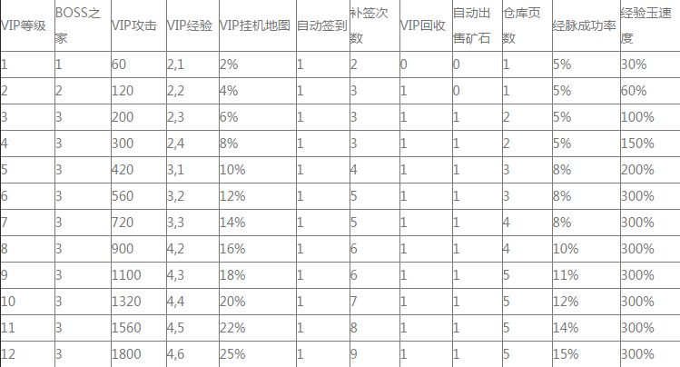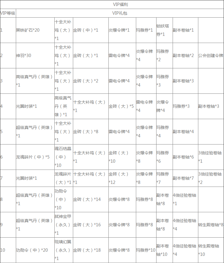 特玩屠龙战神中VIP给玩家提供了许多方便快捷的功能,提升VIP等级还有大量的礼包道具赠送,那么屠龙战神每级VIP需要多少钱呢,每级VIP能获得什么道具呢,下面的表格都有很详细的说明!