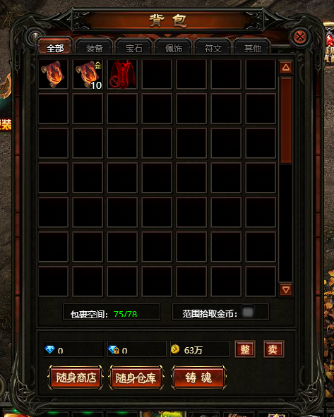 铸魂是清理背包多余装备的合理方式,背包系统提供铸魂系统的快捷入口.