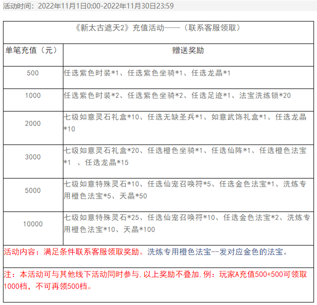 《新太古遮天2》11月限时充值活动