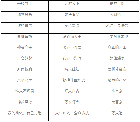 2、 活动期间内单笔充值大于:3800元的大侠都能额外获得以下任选称号*1(注:也可选往期的活动称号)