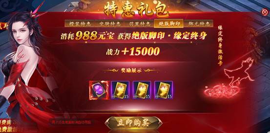 花费988元宝可获得绝版“缘定终身”脚印一个,走路都带风。