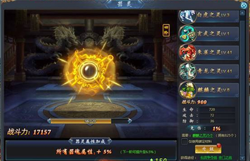 《御魂九霄》开启全新器灵玩法,只要到达60级,即可享受远古器灵的祝福。青龙、白虎、朱雀、玄武、麒麟等远古神兽的器灵祝福,不仅能够帮助《御魂九霄》的道友们增加基础属性,还能够百分比的提高道友所拥有的器魂属性。“免伤”等超强战斗属性,也会随着器灵的升级而增强。通过活动大厅中的日常活动,即可获得器灵升级的资源,不断升阶的器灵,将成为道友们战力增强的最佳途径。
