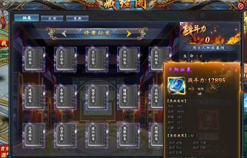 所有开服满7天的服务器,将会迎来“藏经阁”的开启。只要道友们到达100级,即可进入阁中阅读诸多密卷。藏经阁是《御魂九霄》中蕴藏了最多秘密的地方,远古传闻、洪荒传说、修真密卷、天书、圣典等修真界的文字记载,都能够在藏经阁里找到。每一本书,都蕴含着大量的战斗属性,悟通之后即可获得战斗力的加成。获得全套秘卷、天书、圣典的道友,还能够激活藏经阁带来的套装属性,百分比提高系列经书带来的属性加成。