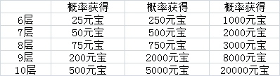 活动描述:活动期间,凡是挑战觉醒塔6层—10层,每层必定掉落一定数量的元宝,10层更有机会获得2W元宝超级大奖,谁是新春锦鲤呢?